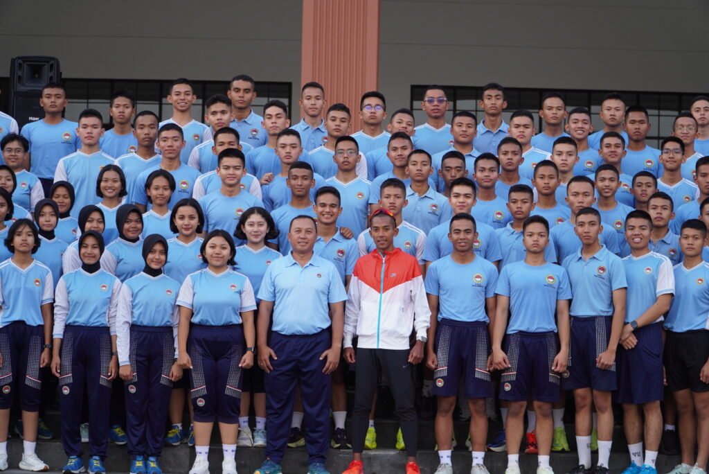 Cimahi – Lapangan olahraga SMA Taruna Nusantara Kampus Cimahi terasa lebih bersemangat dari biasanya. Pasalnya, sekolah mendapat kehormatan dengan hadirnya Agus Prayogo (@agusprayogo21), atlet nasional lari jarak jauh yang telah mengharumkan nama Indonesia di berbagai kancah internasional. Kehadirannya adalah untuk memberikan sesi latihan dasar lari secara eksklusif kepada para siswa.